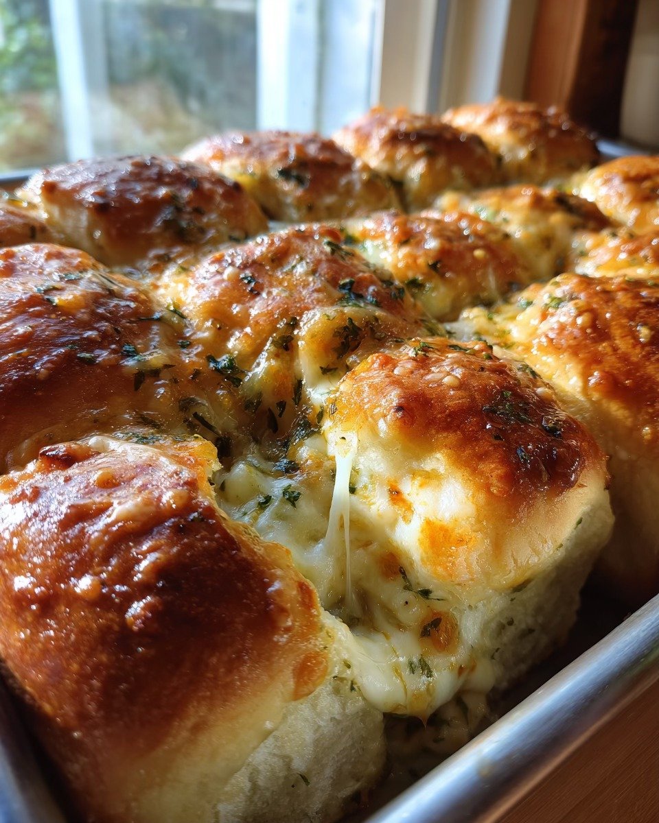 Pop those beauties back into your 400°F oven for 15-20 minutes. You’re looking for bubbly cheese and tops that are golden brown—that’s when you know they’re ready. The smell will be absolutely intoxicating! Let them cool for just a couple minutes (if you can resist), then serve them up while they’re still warm and gooey. Watch as everyone gathers around, pulling apart these cheesy, garlicky bundles of joy. Just try not to eat them all yourself—I can’t make any promises though!