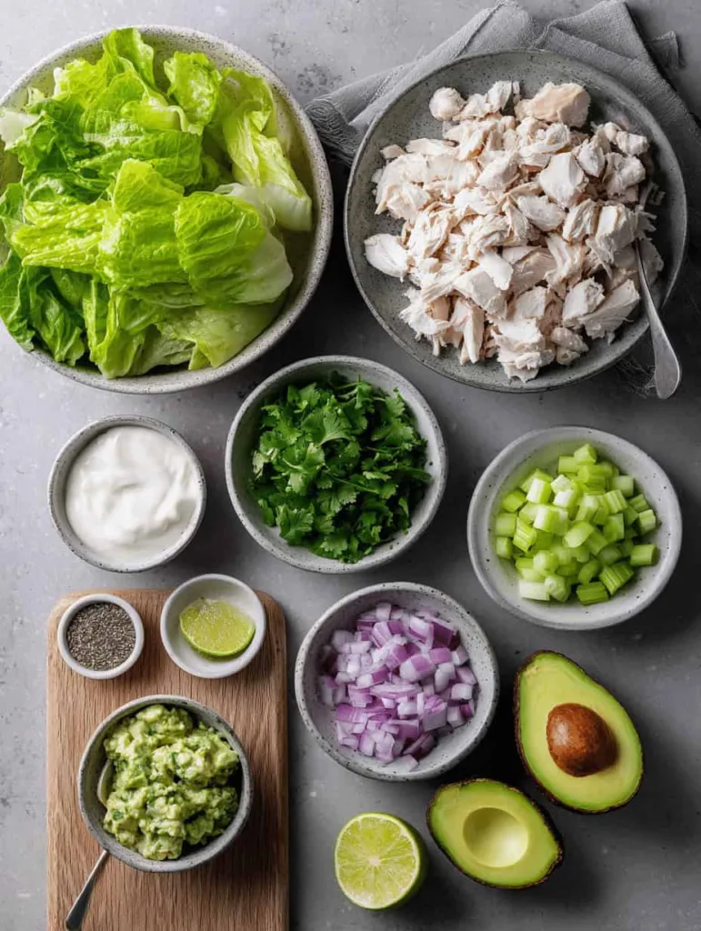 Choose the right avocado ripeness—it should yield slightly to gentle pressure but not be mushy. If your avocado is too firm, let it ripen at room temperature for 1-2 days. For the chicken, rotisserie chicken works perfectly and saves time, but grilled or poached chicken breast also works wonderfully. When preparing the vegetables, ensure they’re finely diced so they distribute evenly and don’t overwhelm the lettuce wraps.