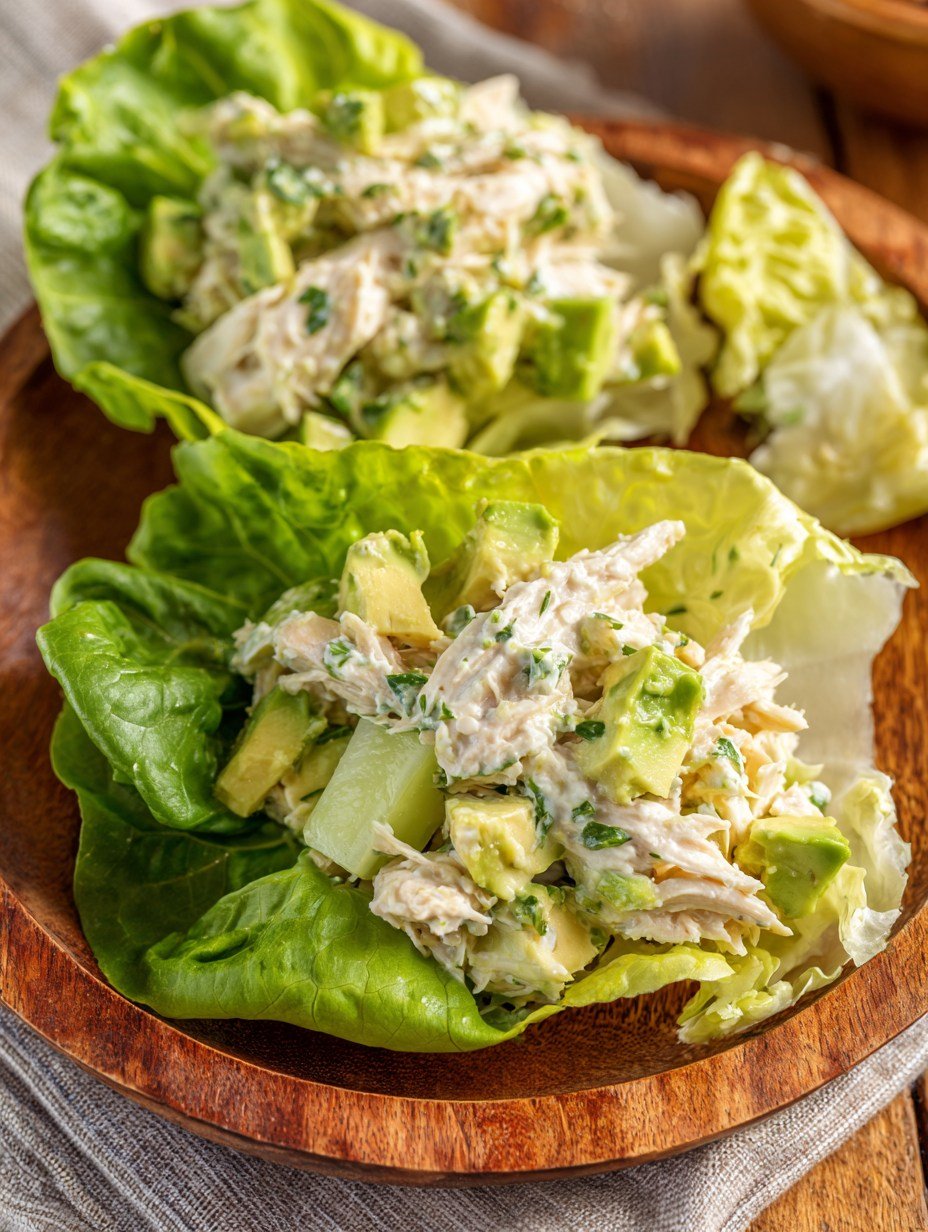 This Avocado Chicken Salad Lettuce Wraps Recipe delivers everything you want in a healthy meal without sacrificing taste. The creamy avocado creates a naturally rich base while Greek yogurt adds extra protein and tang. These wraps are naturally gluten-free and keto-friendly, making them perfect for various dietary needs. The combination of textures—from the smooth avocado mixture to the crisp celery and fresh lettuce—creates a satisfying eating experience that will keep you coming back for more. Plus, they’re ready in just 15 minutes, making them ideal for busy weeknight dinners or meal prep lunches.