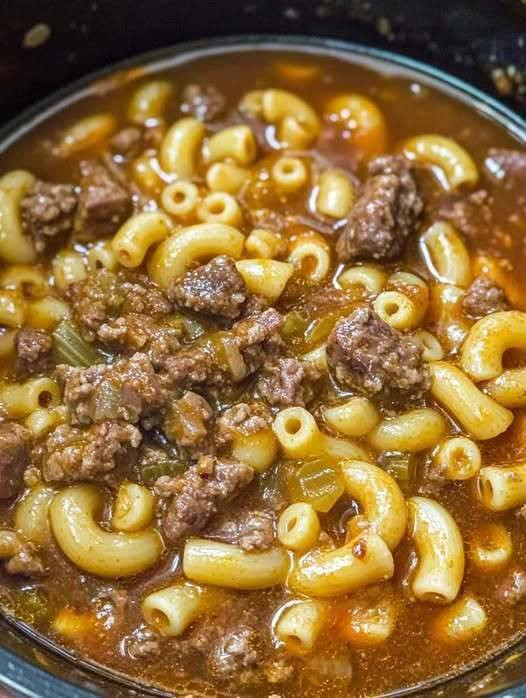 Beef and macaroni soup is a timeless recipe because it checks all the boxes: