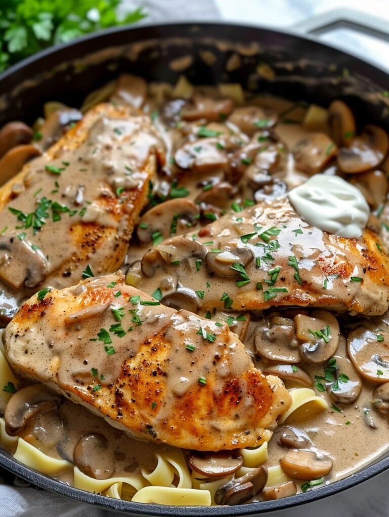 Return chicken to the pan and simmer gently for 8–10 minutes until chicken is cooked through and sauce thickens.
