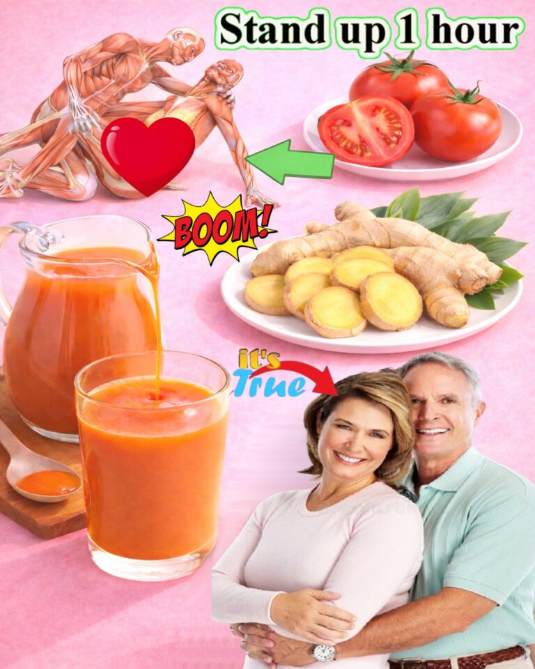 This ginger and tomato natural tonic is a simple, nourishing option often included in wellness routines to support steady energy, focus, and overall balance, when paired with good sleep, hydration, nutritious meals, and regular movement.