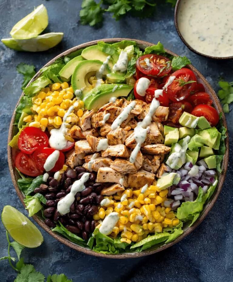 This Southwest chicken salad isn’t your ordinary salad – it’s a flavor-packed meal that satisfies all your cravings. The combination of tender chicken, hearty black beans, sweet corn, and creamy avocado creates a perfect balance of textures and tastes. The zesty lime dressing ties everything together with a bright, tangy finish that makes each bite irresistible.